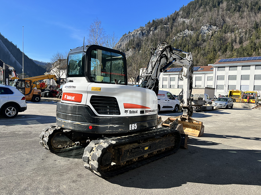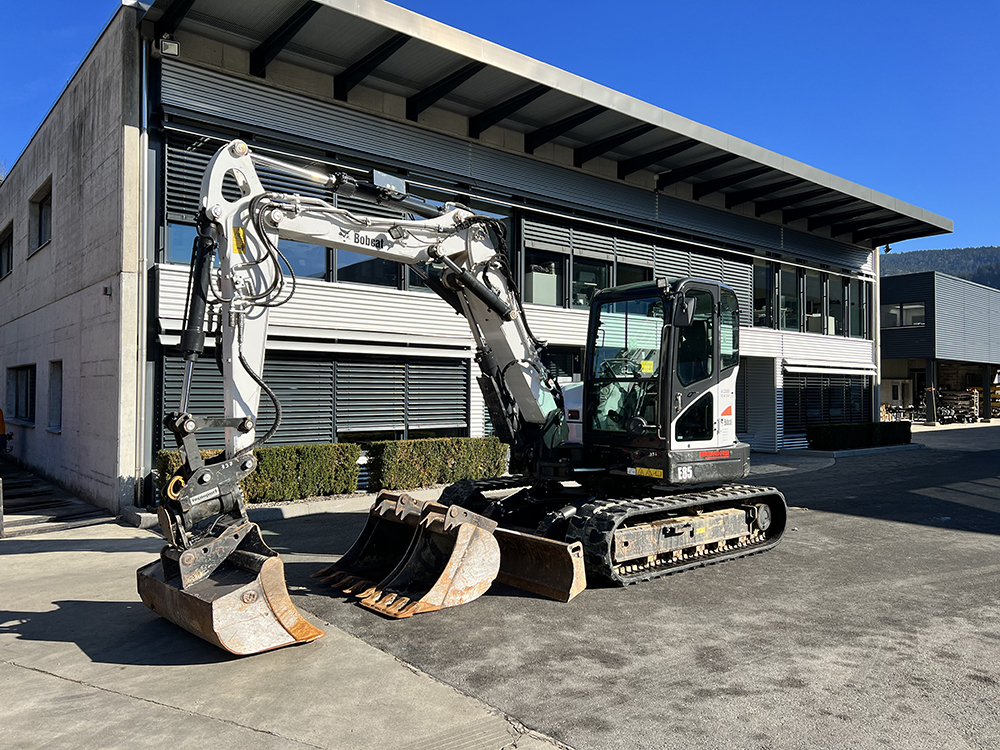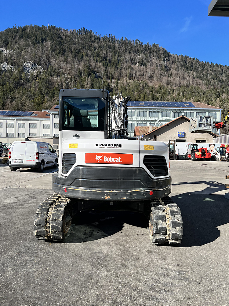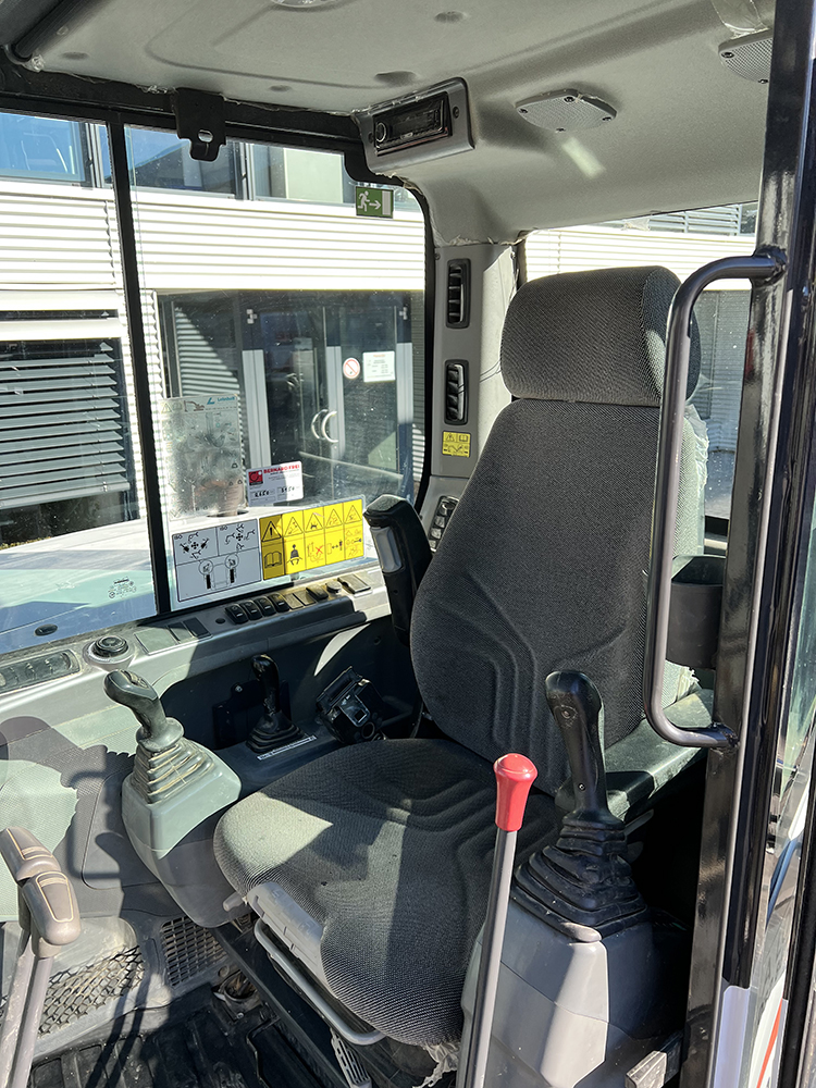 Moteur 4 cylindres Yanmar 44.3 kW, 60 CV – Mise automatique du moteur au ralenti – Chenilles caoutchouc 450 mm – Lame de remblayage 2300 mm – Poids 8540 kg – Transmission hydrostatique 2 vitesses 2.7 et 4.7 km/h – Circuit auxiliaire 95 lt/min – Cabine chauffée et climatisation ajustable – Siège suspendu avec ceinture de sécurité – Avertisseur sonore et phare de travail – Bras articulé – 3ème fonction hydraulique – Contrepoids supplémentaire – Attache hydraulique MS08 avec Powertilt
