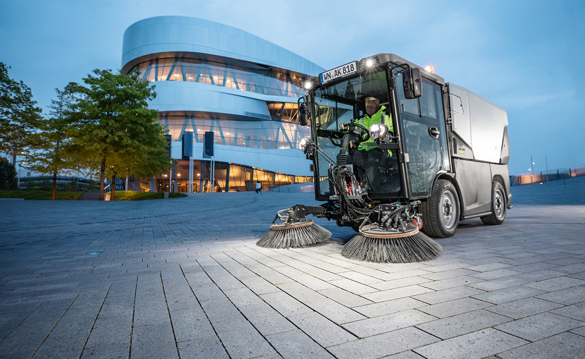La technique à destination des communes est une priorité majeure pour Kärcher. C’est pourquoi nous avons investi tout notre savoir-faire et notre vaste expérience dans le développement de la balayeuse aspirante MC 250. Par conséquent, la MC 250 au design attrayant offre une puissance de nettoyage inégalée à faible régime du moteur, un volume de cuve à déchets généreux de 2,5 m³, une vitesse de transport élevée de 60 km/h et un confort de conduite optimal grâce à la suspension hydropneumatique et à la suspension individuelle des roues. La grande cabine, en option également avec climatisation, équipée de sièges qui ménagent le dos, et le concept d’utilisation ergonomique avec un écran multifonction convivial intégré dans le volant garantissent un environnement de travail agréable et une grande facilité d’utilisation. Notre MC 250 dispose en outre d’une direction intégrale pour une maniabilité optimale et un système de recyclage de l’eau efficace avec un réservoir d’eau sale séparé. La machine convient à toutes les villes et communes, quelle que soit leur taille, offre une maintenance très facile et s’illustre de surcroît par ses très faibles émissions de gaz d’échappement et de poussières.