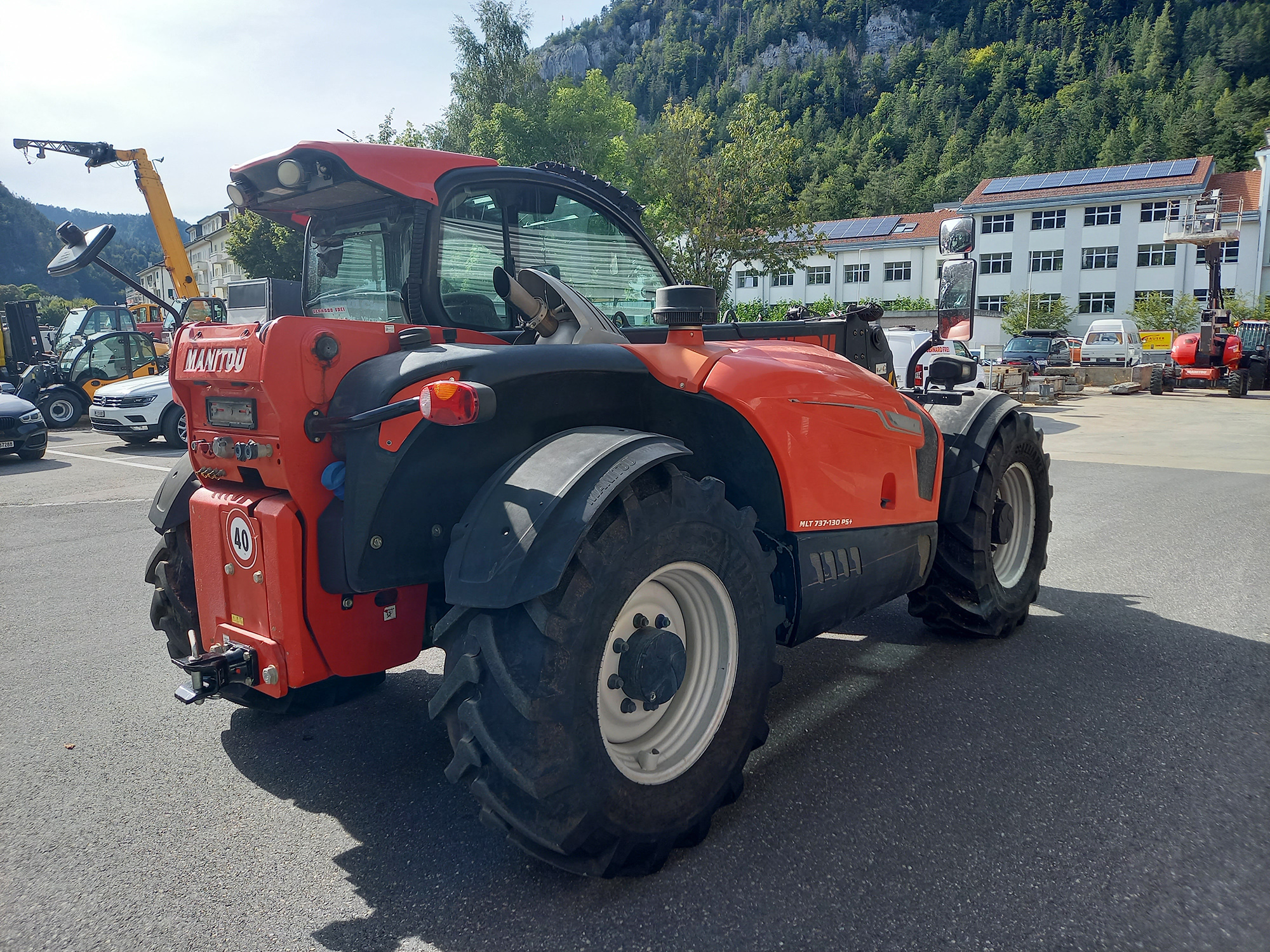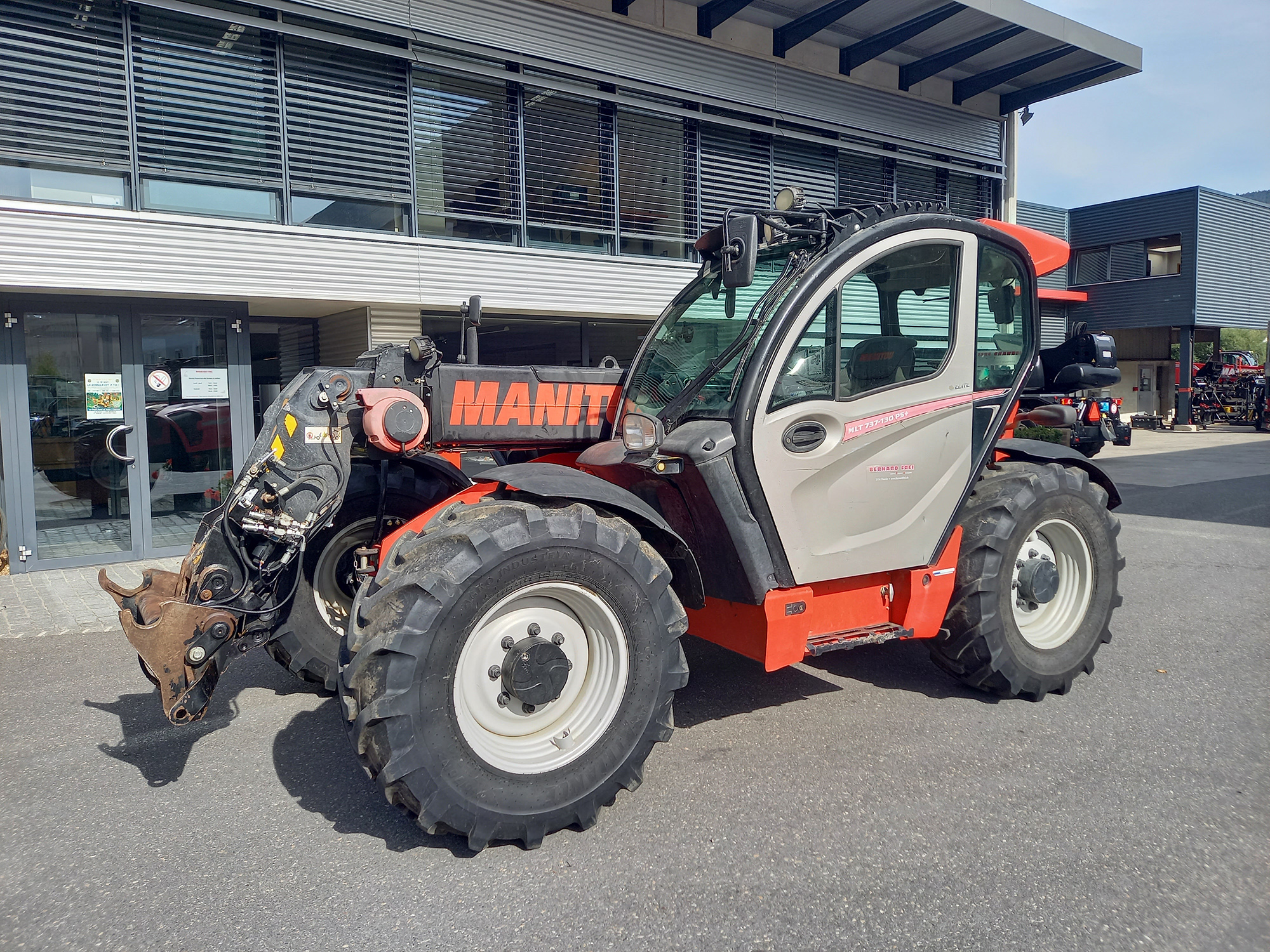 Génération NEW AG – Capacité de charge 3700 kg – Hauteur de levage 6.90 m – Moteur Deutz TCD 3.6 lt 129 CV – Cabine panoramique – Accès de cabine unique, breveté – 2 phares de travail avant et 2 arrière – Circuit hydraulique Load Sensing 150 lt/min – Distributeurs Flow Sharing – Joystick «JSM» – Circuit et coupleurs hydr. en tête de flèche – Traction : 4 RM – Direction : 4 RD – Transmission « Powershift PLUS » – vitesse 40 km/h – Pneus 460/70 R 24 Alliance A580 – Prise électrique arrière – Rétroviseur arrière pour le crochet – Autoradio CD MP3 Bluetooth- Cabine avec climatisation automatique – Ecran de contrôle couleur VISION 7’’ – Easy Connect System ECS – Marche forcée hydraulique – Feux de travail à LED : 2 avant et 2 arrière – Siège GRAMMER à suspension active – Suspension de flèche ACTIVE CRC – Réalignement semi-automatique des roues – Rétroviseur droite dégivrant et réglable électr. – feux en haut de pied de flèche – verrouillage hydraulique et 2x DE en tête de flèche – distributeur arrière double effet – Homologation tracteur agricole 40 km/h – Charge remorquable 20 to – Frein de remorque hydraulique 2 conduites