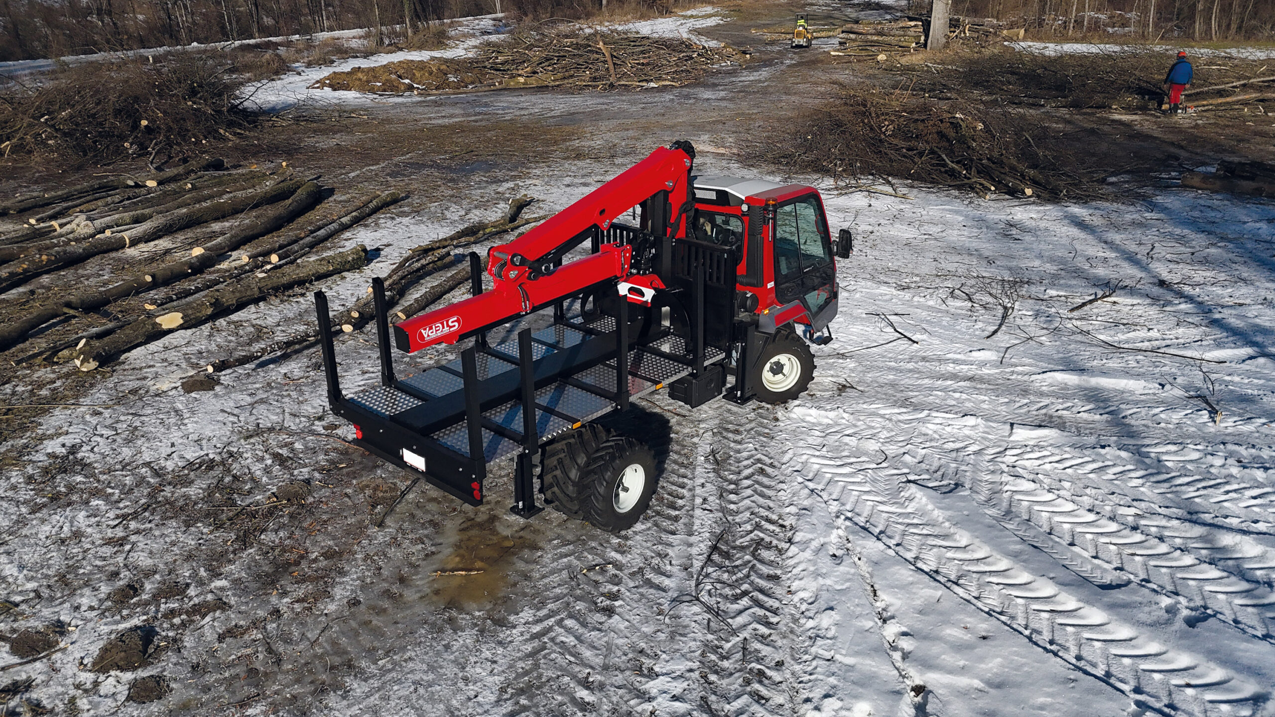 La nouvelle structure forestière Stepa combine une grue forestière compacte et peu encombrante avec une surface de chargement fermée sur une plate-forme polyvalente. Grâce à son faible poids propre, vous bénéficiez d’une charge utile maximale sans compromis sur les performances. La superstructure forestière se démonte facilement et rapidement, ce qui vous permet d’utiliser immédiatement votre camion à d’autres fins. L’utilisation flexible en sylviculture n’a jamais été aussi simple.