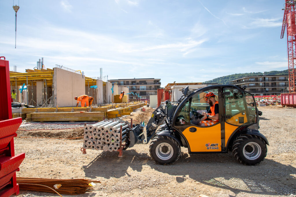 Impossible de ne pas parler du best-seller de Tobroco-Giant : le chariot télescopique GT5048. En raison de sa compacité, de ses quatre roues directrices et de sa hauteur de levage de 4.8 m, le Giant GT5048 est parfait pour manœuvrer dans des espaces étroits. Il appartient à la catégorie des télescopiques compacts avec une largeur de 1.60 m et une hauteur de 1.97 m.
